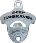 Have your text or logo deep engraved into the hood of our classic zinc plated, cast iron STARR "X" bottle opener. Logo is then color-filled for effect. This low volume, deep engraving process creates a truly original & authentic piece and comes packaged in either our retro box or our traditional open-faced box with 2 mounting screws. Although the actual bottle opener is cast in Germany, logo production and assembly occurs in the USA by the original manufacturer and patent holder. This makes the opener a little bit more of an American-made product. Includes FREE SHIPPING in the USA too.