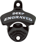 Have your text or logo deep engraved into the hood of a black powder coated, cast iron STARR "X" bottle opener. Logo is then color-filled for effect. This low volume, deep engraving process creates a truly original & authentic piece and comes packaged in either our retro box or our traditional open-faced box with 2 mounting screws. Although the actual bottle opener is cast in Germany, logo production and assembly occurs in the USA by the original manufacturer and patent holder. This makes the opener a little bit more of an American-made product. Includes FREE SHIPPING in the USA too.