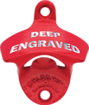 Have your text or logo deep engraved into the hood of a red powder coated, cast iron STARR "X" bottle opener. Logo is then color-filled for effect. This low volume, deep engraving process creates a truly original & authentic piece and comes packaged in either our retro box or our traditional open-faced box with 2 mounting screws. Although the actual bottle opener is cast in Germany, logo production and assembly occurs in the USA by the original manufacturer and patent holder. This makes the opener a little bit more of an American-made product. Includes FREE SHIPPING in the USA too.