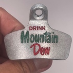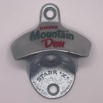 Deep Engraved Mountain Dew STARR "X" bottle opener. Zinc Plated, White Cast Iron STARR "X" bottle opener. An authentic design from the original manufacturer. Carries our STARR trademark on its' base. Comes individually boxed with 2 mounting screws. 3.25 inches high x 2.75 inches wide x 1.25 inches deep.